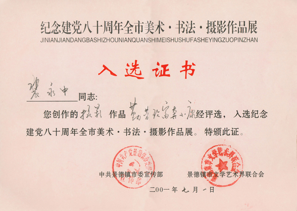 建党八十周年全市美术书画入选证